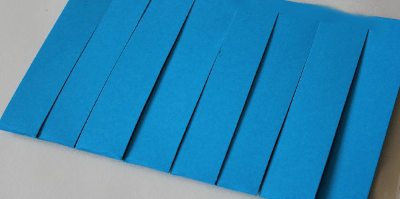 - Две толстые полоски складываем друг к другу, цветными сторонами наружу. Обрезаем уголки, закругляем.