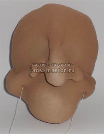 Синтепоновая заготовка обтягивается капроном (в работе используются колготки, чулки, гольфы). Чтобы нос принял необходимую форму, следует стянуть его нитками.