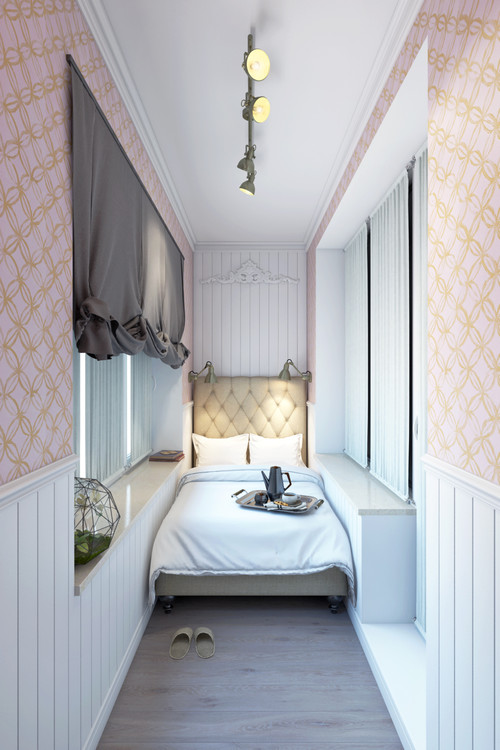 У владельцев небольших одно- или двухкомнатных квартир всегда возникает вопрос о том, где обустроить детскую, а где спальню для взрослых. Обычно родители стараются в первую очередь создать комфортные условия для детей, а сами располагаются на раскладном диване в гостиной, что крайне неудобно, так как приходится каждое утро и вечер раскладывать и складывать спальное место. Поэтому, если площадь балкона или лоджии позволяет, помещению обеспечено хорошее утепление, то спальню вполне возможно разместить на ней. Конечно, на столь небольшой площадке нельзя будет поставить никаких лишних предметов мебели, но зато у взрослой части семьи появится собственная комната для отдыха.