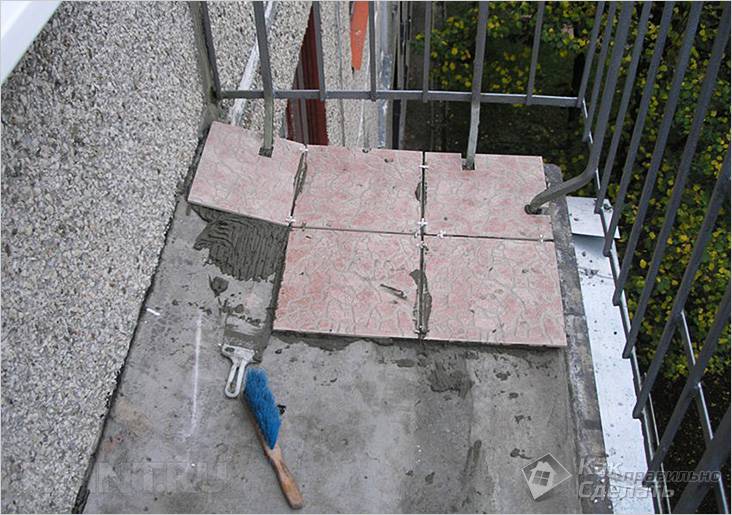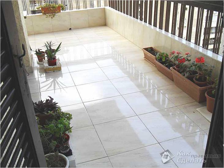 Хорошо подобранная для отделки стен плитка станет настоящим украшением для балкона. Ее монтируют на выровненную стену на специальный плиточный клей, причем, если плитка изготовлена из смеси на основе гипса, то и клей должен соответствовать ее составу. Если же в состав отделочного материала входит цемент, то и клей выбирается на цементной основе.