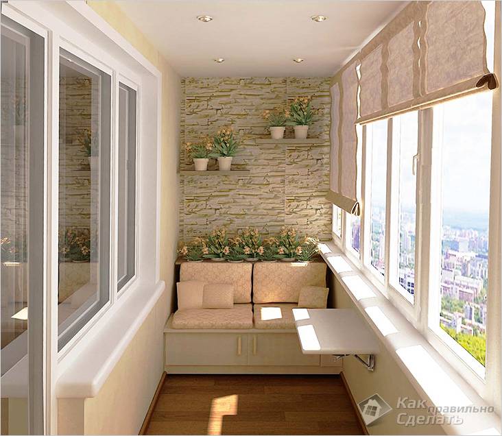 Правильная расстановка элементов декора поможет выправить форму лоджии