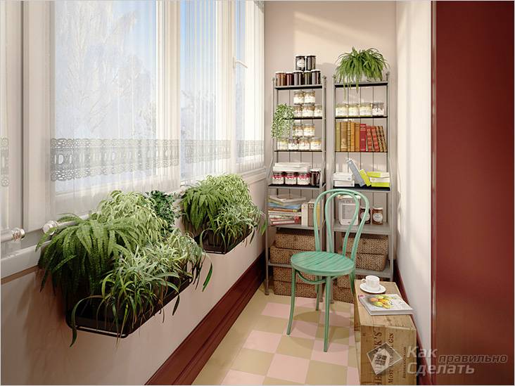 Растительность позволит оформить оригинальный интерьер лоджии без больших финансовых затрат