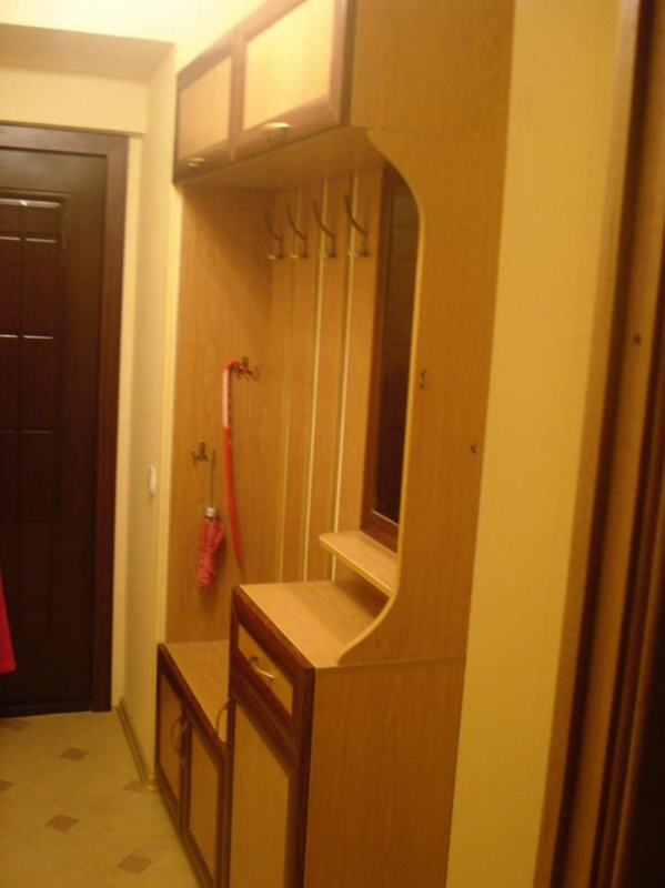 Также возле входной двери необходимо повесить полку, на которую можно положить ключи, мелкие аксессуары, повесить сумку и т.д. В этом же направлении следует расположить и шкаф, где будет находиться верхняя одежда, а также полка с повседневной обувью. Так как не рекомендуется сразу убирать в шкаф влажную или мокрую одежду, необходимо предусмотреть расположение для открытой вешалки, там же может быть место для хранения зонта. Чтобы мокрые вещи не смогли испортить внешний вид стен покрытие желательно использовать влагоустойчивое.
