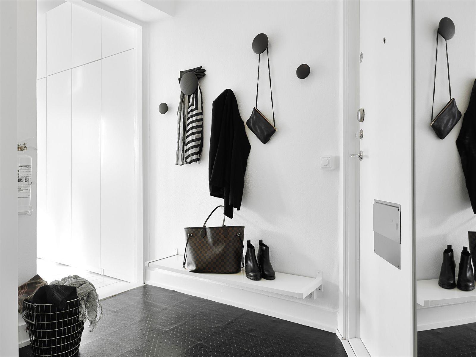 Для размещения сумок, зонтов, ключей подойдут пуф, полка и вешалки с крюками либо поверхность тумбочки для обуви.