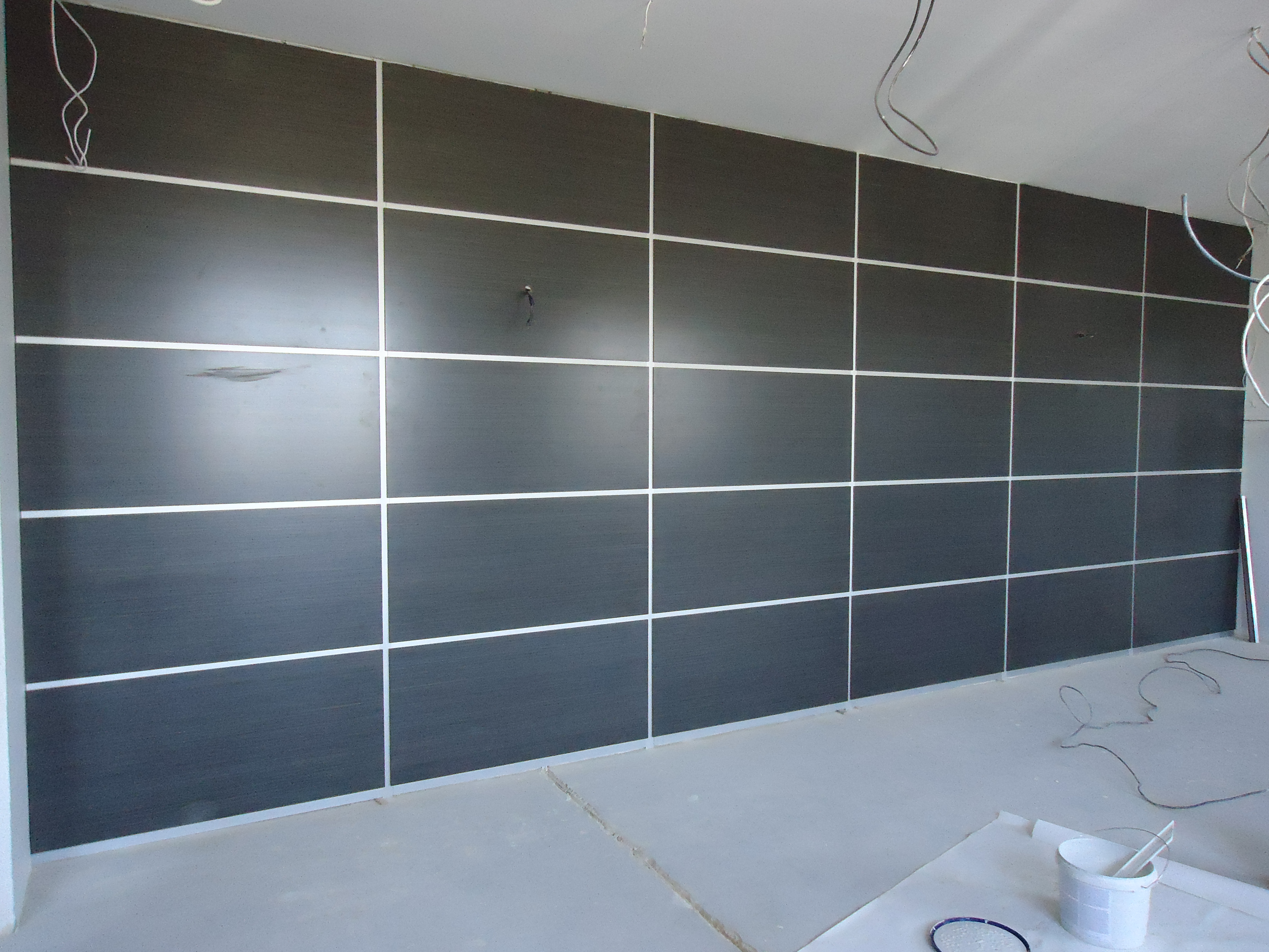 Выбор, который стоит перед хозяевами, велик: от декоративной штукатурки (примеры — ) до керамической плитки и обоев. Хозяева этого помещения ограничились именно последним вариантом.