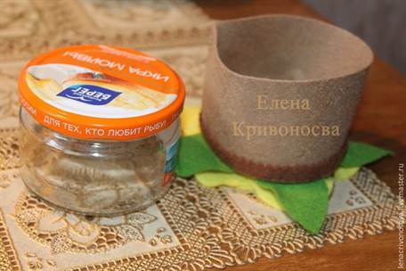 - Готовую подушечку приклеить к крышке банки (заранее можно слегка зашкурить поверхность для более плотного прилегания).