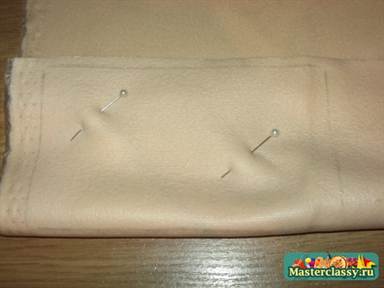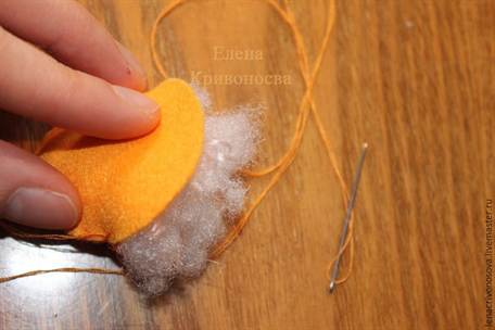 - Внутрь ткани помещаем небольшой кусочек синтепона и сшиваем его.