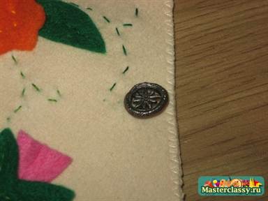 Застежка для книжки-игольницы может быть также выполнена в виде петли и пуговички. Страниц в такой «книжке» может быть две или более, в зависимости от необходимости. Они могут быть полностью изготовлены из фетра или частично вклеены на основной материал.