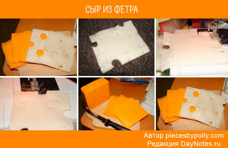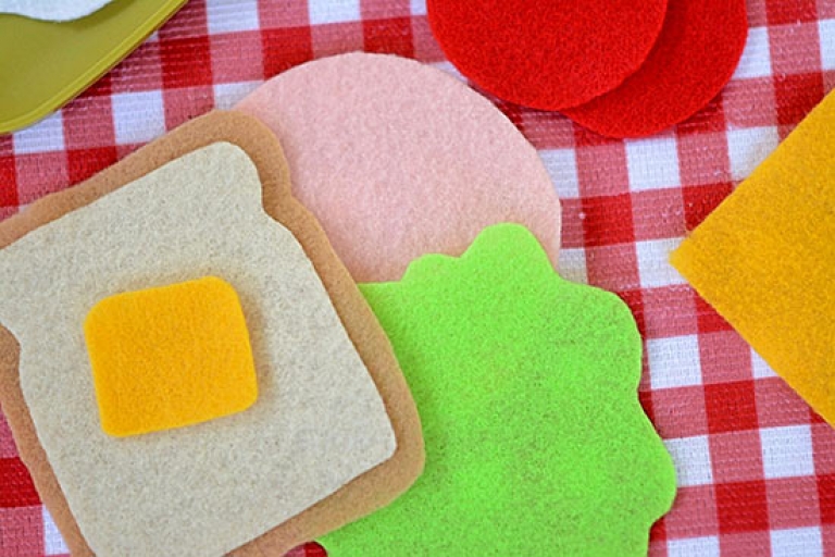 - Сшейте из фетра пирожки и тортики, которые будут печься в духовке. С обратной стороны игрушечной еды прикрепите липучку.