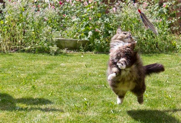 Кошки, от мала до велика, обожают предметы, за которыми можно гоняться, подпрыгивая и охотясь на них.