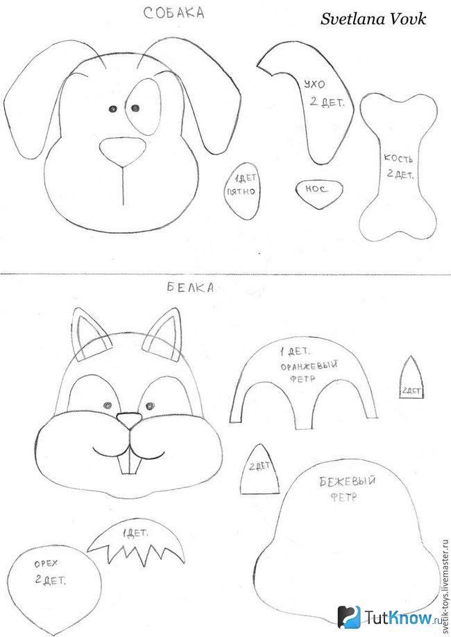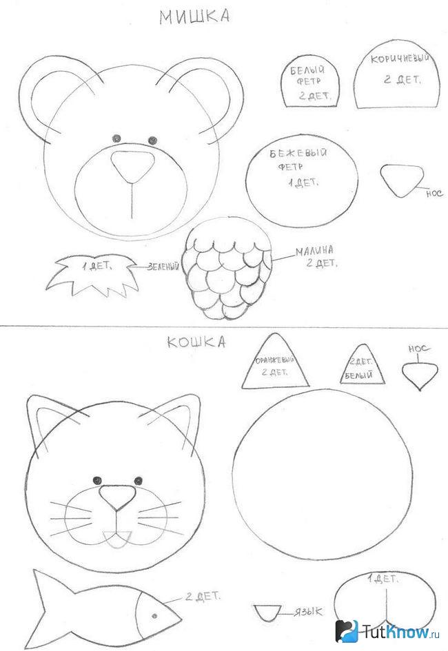 Увеличьте и перенесите детали на картон, потом при помощи трафарета вырежьте их из фетра.