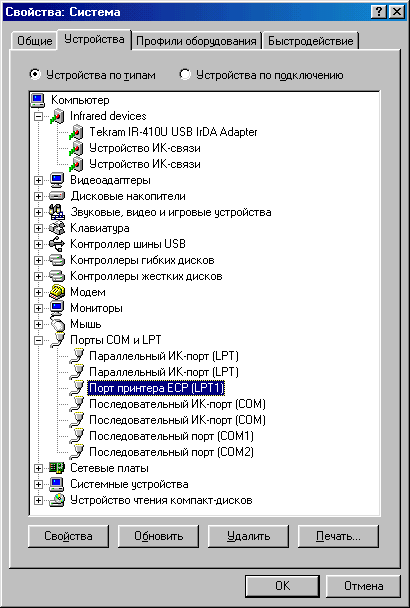 При установке ИК-порта на COM вас ждет счастливое плавание. В комплекте к устройству идет CD-диск, установить драйвера с которого не составит никаких трудностей. Правильно установите номер порта, к которому подключен ИК-порт. Посмотрите, не занят ли COM-порт другим устройством, например, внутренним модемом. Также проверьте установки BIOS для параллельного порта — он должен быть установлен в режим ECP, а не в Normal или SPP (значение по умолчанию).