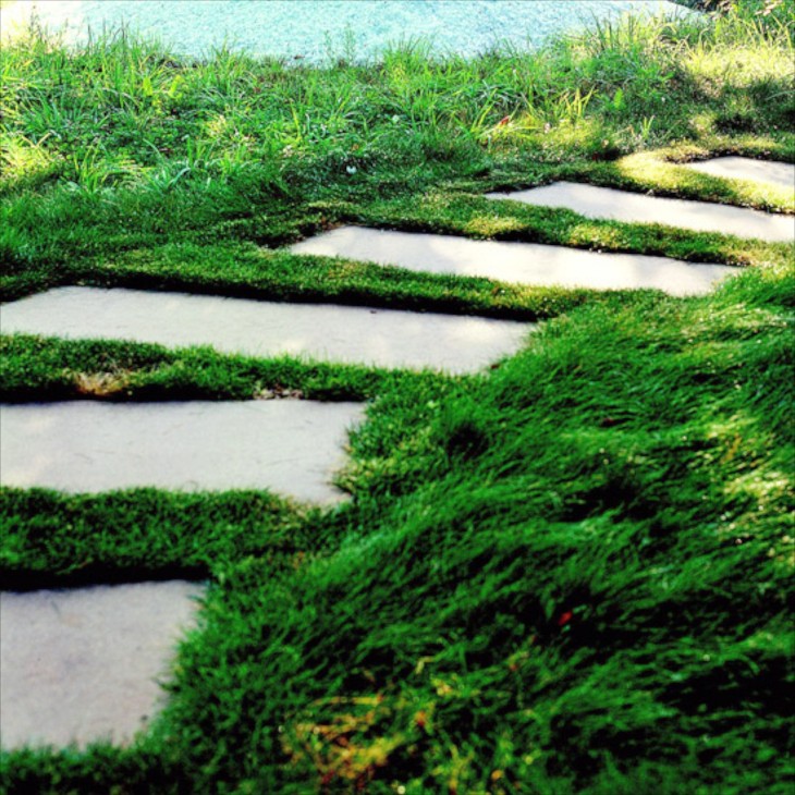 На даче можно сделать травяные дорожки — тропинки из газонной травы. Для них подбирают устойчивые к вытаптыванию растения. Ухаживают за ними так же, как за газоном.