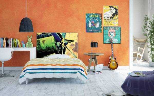 - Можно использовать ткань с различными рисунками, узорами, изображениями. Обычно такой выбор показывает индивидуальность характера хозяина комнаты и помогает оживить спальню.