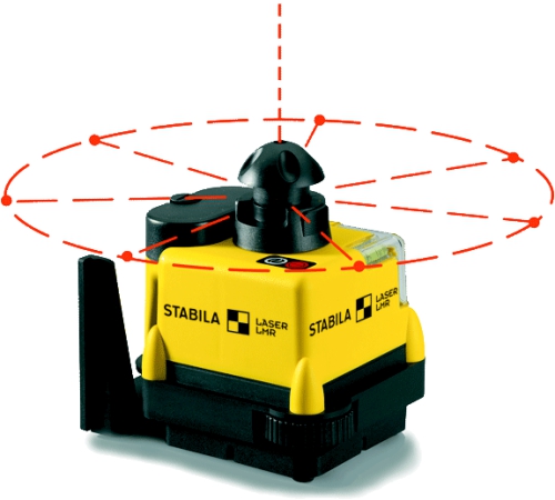 Они оборудованы точечными лазерными устройствами, но не фиксированными, а вращающимися с регулируемой частотой. Предназначены для проведения разметки на очень больших площадях, например, на стройплощадке. Ротационный нивелир может проецировать плоскость на 360°.