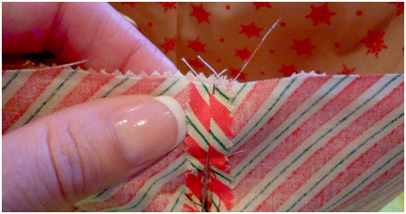 8. Стачать нижний шов мешка из подкладочной ткани.