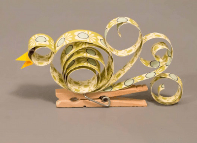 Такую легкую поделку из бумаги можно смастерить быстро из двух желтых цилиндров.