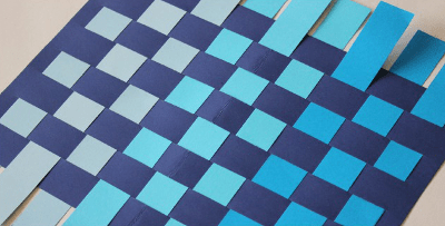 Цветная бумага (двух цветов, которые могут контрастировать друг с другом, но не нарушая гармоничного сочетания, например, голубого и фиолетового).