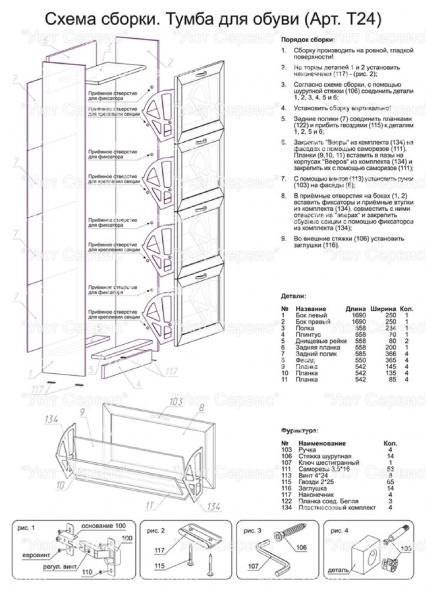 Максимальной функциональностью обладает модель полки для обуви «Слим». Вмещая большое количество пар обуви, она обладает компактными размерами. Сделать ее своими руками крайне сложно ввиду большого количества фурнитуры. Гораздо проще приобрести готовую конструкцию и заняться самостоятельной сборкой. В подспорье вам будет следующая схема: