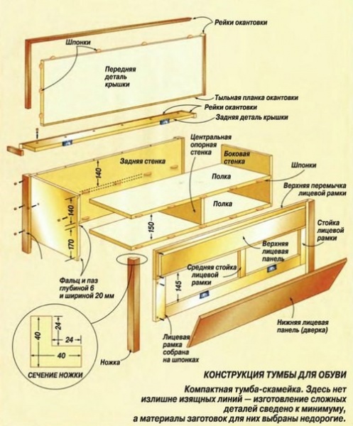 Неотъемлемым условием является предварительное проектирование. Вы можете воспользоваться готовыми схемами или начертить эскиз полки для обуви самостоятельно.