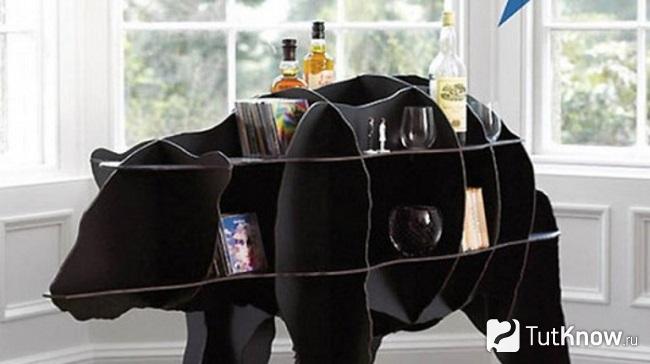 Другой вариант полки из картона — оригинальный стеллаж-бар выполненный в виде медведя. Необычно, креативно, стильно: такая полка украсит собой любой интерьер, будь то спальня, гостиная или кабинет.