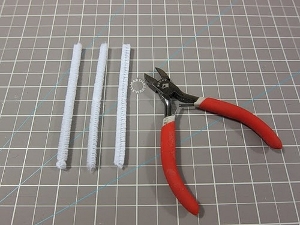 1) Порежьте проволоку на ровные 10 кусочков, сделав на каждом крючок для удержания бисера.