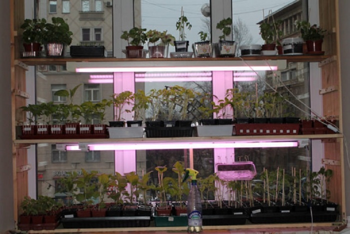 Стационарная конструкция оптимально подходит для регулярного выращивания рассады, когда площадь жилья позволяет установить стеллаж без ущерба свободному пространству.