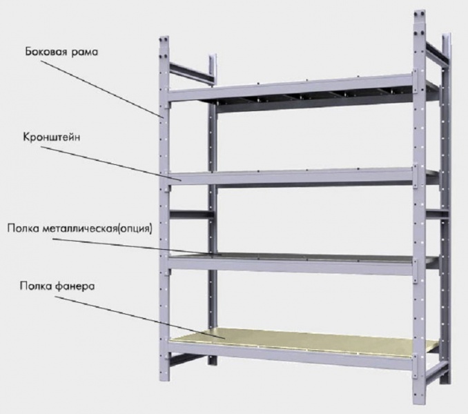 Обычно конструкция стеллажа включает 3-6 полок с промежутками между уровнями до 70 см. Оптимальная ширина составляет 50-60 см.
