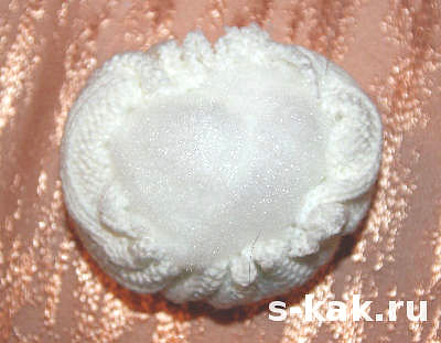 - Слегка стяните нитку. В получившейся мешочек положите ватку.