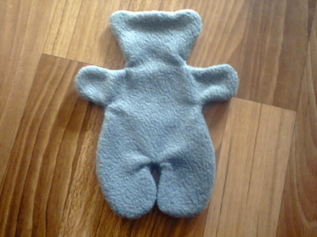 Поверните медведь с правой стороны, вам может быть проще использовать ручку деревянной ложки в руках и ногах, чтобы вытолкнуть их.