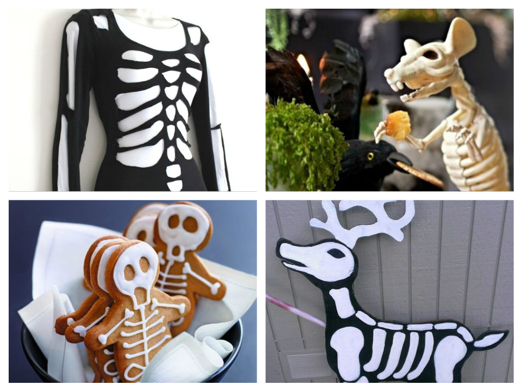 Нарисованные скелеты на стаканах, тарелках, дверях, окнах нагонят жути. Если найдете надувные шары с «костяшками», будет замечательно. Кстати, почти из «настоящих» костей делают брелоки – небрежно брошенные на журнальный столик, они помогут создать правильное настроение.