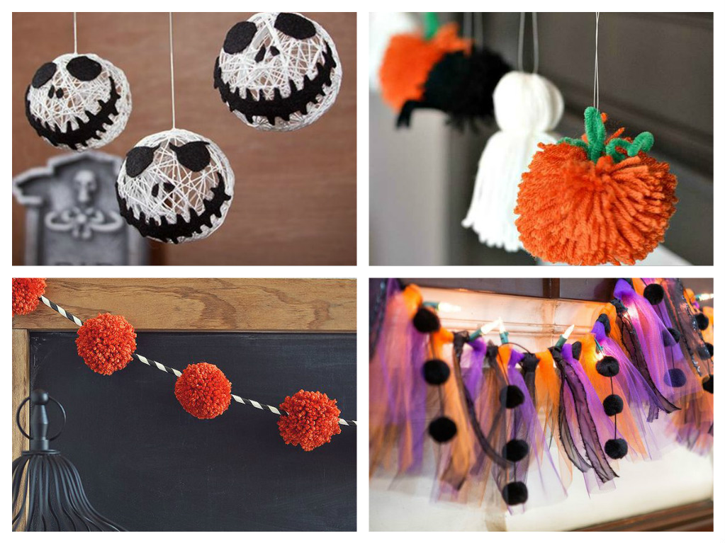 Гирлянда может быть и текстильной, как на фото декора на Хэллоуин своими руками ниже: