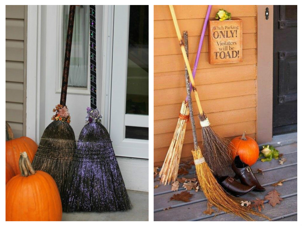 Из собранных в парке веточек можно соорудить настоящую метлу и поставить ее у входа в дом. Ведьмы же прилетели к вам!
