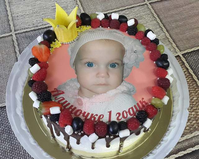 - Малышка будет рада яркому десерту с героями любимых мультиков, с цветочно-ягодной темой или элегантно-воздушному оформлению из сладких кружев и бисера.