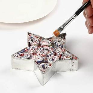 А вот такую звездочку просто сделайте в нескольких различных вариациях, используя для декора обычной картонной основы: