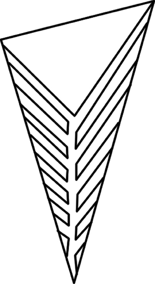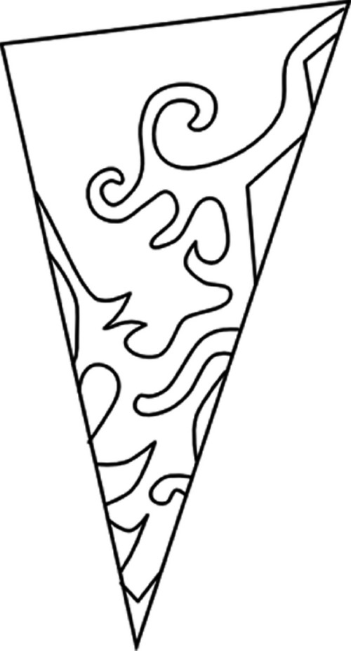- Изготовьте восемь таких элементов. Их широкую часть вложите в маленький квадрат.