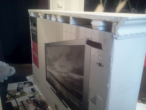 Можно сделать фальш камин из обычной картонной коробки из под телевизора.