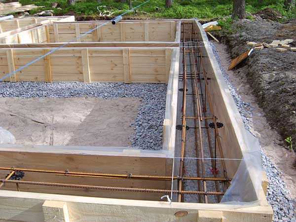Преимущество деревянных конструкций в том, что они легкие. Вот и получается, что для их постройки не нужно сильно углублять фундамент и делать его особо устойчивым. Вам нужно сделать монолитный плитный фундамент мелкого заглубления. Алгоритм действий следующий: