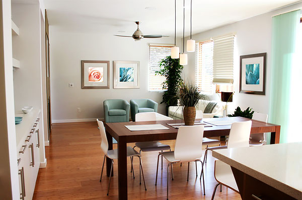 - С помощью рисунков легко можно зонировать пространство, например, это необходимо в квартирах-студиях. В таком случае в зоне отдыха располагают пейзаж или портрет, а столовую зону украшают натюрмортом из фруктов или овощей.