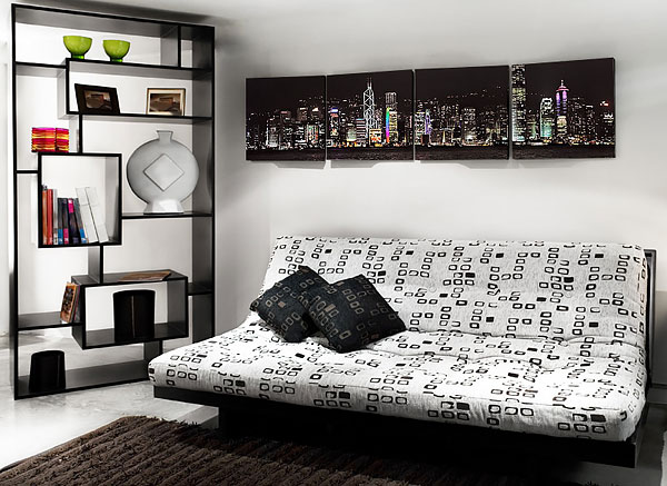 - размер изображений должен соответствовать параметрам мебели: большие полотна зрительно уменьшают размер гарнитура, а маленькие могут затеряться на его фоне;