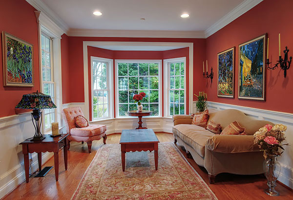 Важно! На стены, окрашенный в яркие, сочные цвета не стоит вешать картины в пастельных тонах – фон стен просто «задавит» нежные краски рисунка.