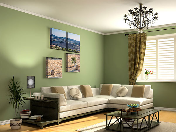 - в случае, если картин несколько, то в центр следует поместить самую яркую и большую, а те, что поменьше и менее броские — по краям;