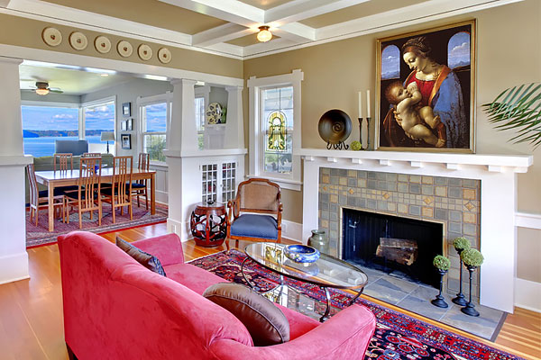 После того как картина выбрана, остается найти для нее достойное место. При этом важно помнить – полотно, расположенное по центру стены, организовывает пространство и в то же время притягивает к себе максимум внимания.