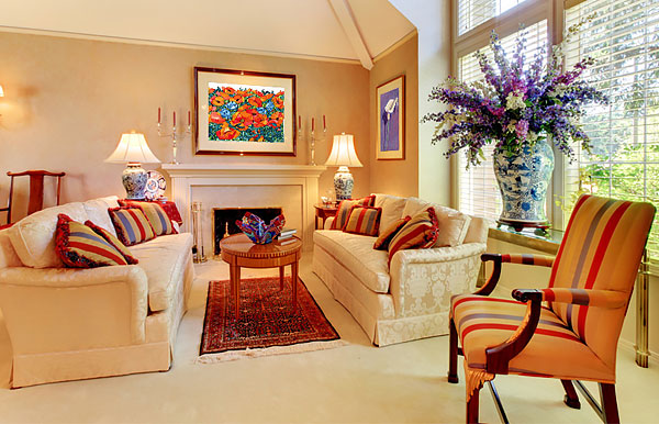 - Если вам нравятся большие картины, или те, на которых нарисованы большие цветы, учтите, что для таких картин нужно большое помещение. Они очень красивы на расстоянии. Дизайн такого помещения воспринимается совершенно иначе, когда в интерьере расположена яркая, интересная картина. Кроме того, зрительное восприятие большого пространства уменьшается. Такую картину хорошо разместить в просторном зале или гостиной.