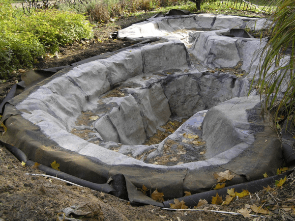 Когда дачный сезон закончится, нужно будет спустить воду из водоема, убрать в помещение оборудование, а остальное накрыть клеенкой, чтоб защититься от грязи.