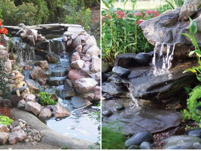 Для создания стекающей воды можно использовать разные емкости: чаши, морские раковины, озерца и др.