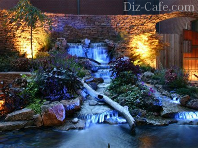 Комнатный фонтан можно дополнить подсветкой. В темное время суток такой фонтан будет служить своеобразным ночником. Звуковой фон и дополнительно вмонтированные часы или барометр сделают фонтан функциональным.