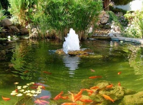 Если украсить свой фонтан, то это еще больше подчеркнет насколько он уникальный. Рядом с прудом можно положить природные камни, можно даже разных цветов, выставить комнатные растения, поставить различные фигуры игрушек или животных и т. д.