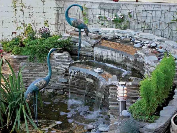 - каскадный: вода падает с небольшой высоты, переливаясь по декоративным выступам;