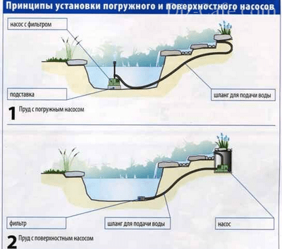 В зависимости от расположения насосного оборудования выделяют два вида фонтанов, погружные и стационарные.